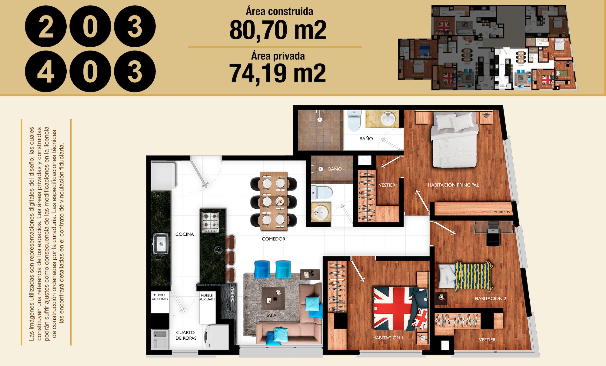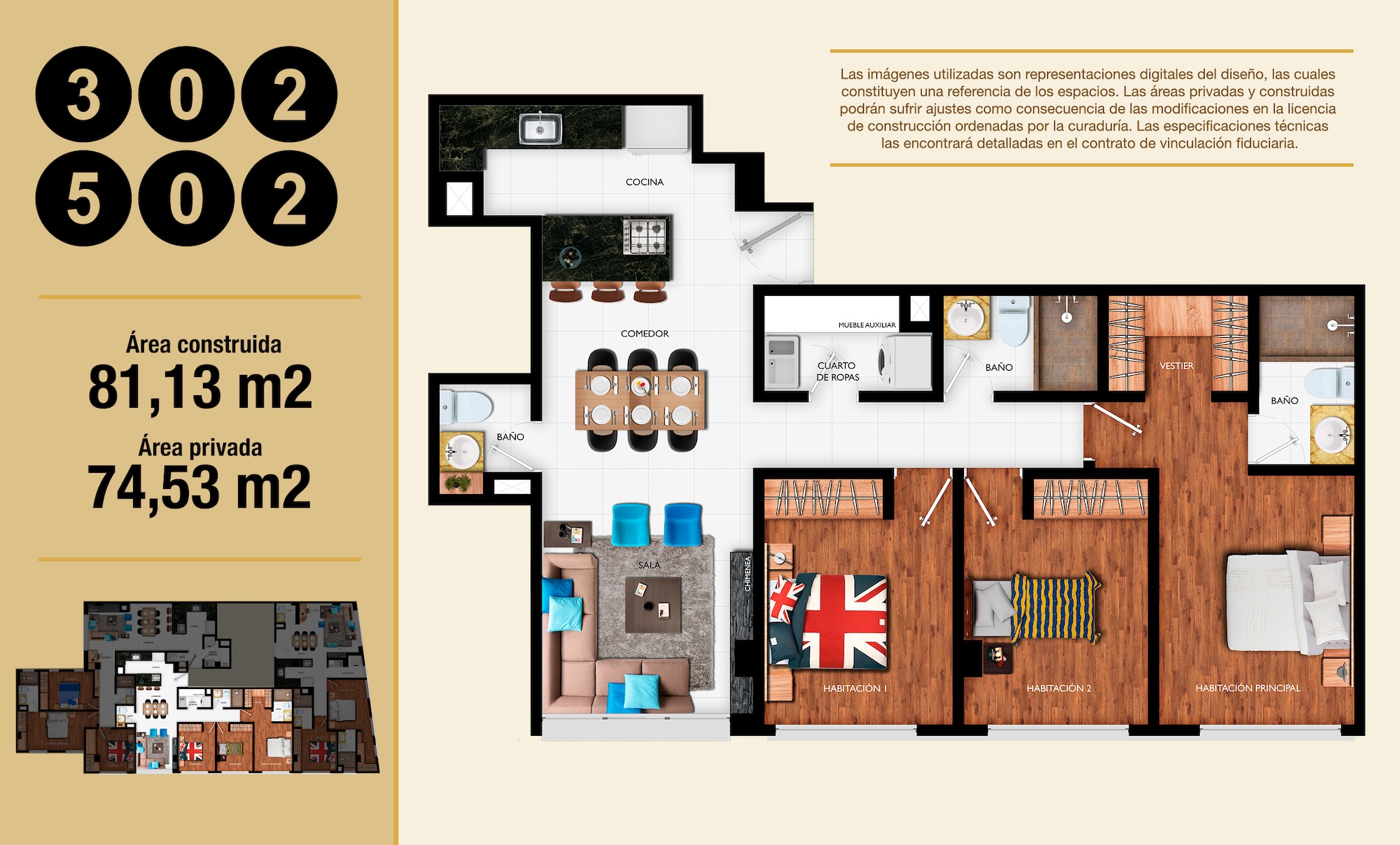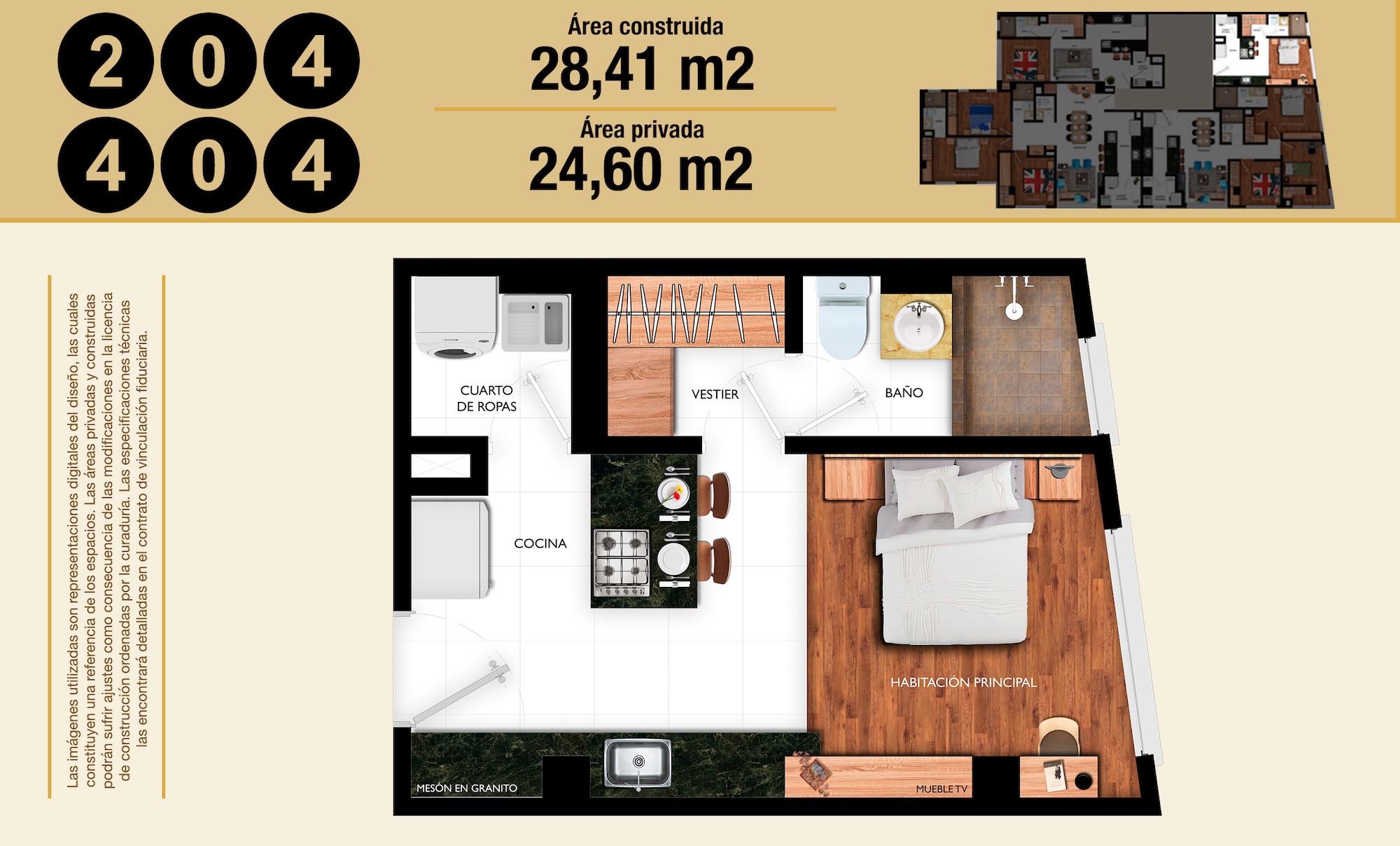 *Imágenes de referencia del proyecto, especificaciones y detalles arquitectónicos sujetos a cambios por proceso de licenciamiento y constructivo. Los apartamentos no se entregan con los elementos de decoración ni el mobiliario. Pregunte en sala de ventas por el detalle de acabados.